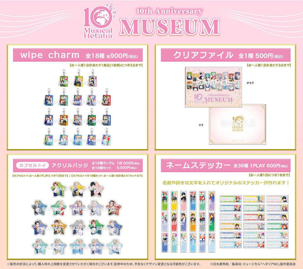 『ミュージカル「ヘタリア」10th Anniversary Museum』開催記念グッズなどを販売予定です。
