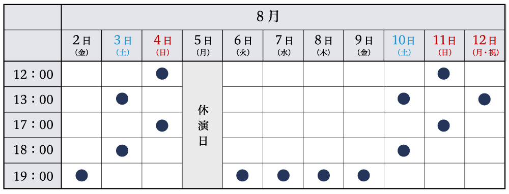 2024年8月2日(金)▶▶▶8月12日(祝・月) 全14公演