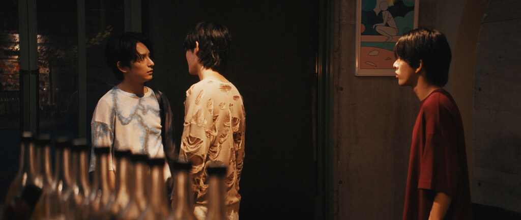 本ポスタービジュアルには昇役の森崎大祐が中心に左に宮林役の橋本祥平、右にはサングラスが印象的な寺田役の浅沼晋太郎が並ぶ。背景にも劇中のカットがあり、何を表すのか・・・劇場でご確認ください。まさに、“現実か、虚構か。これは業を背負った俳優の物語。”という、現実と虚像が入り混じったように見えるビジュアルが完成いたしました。